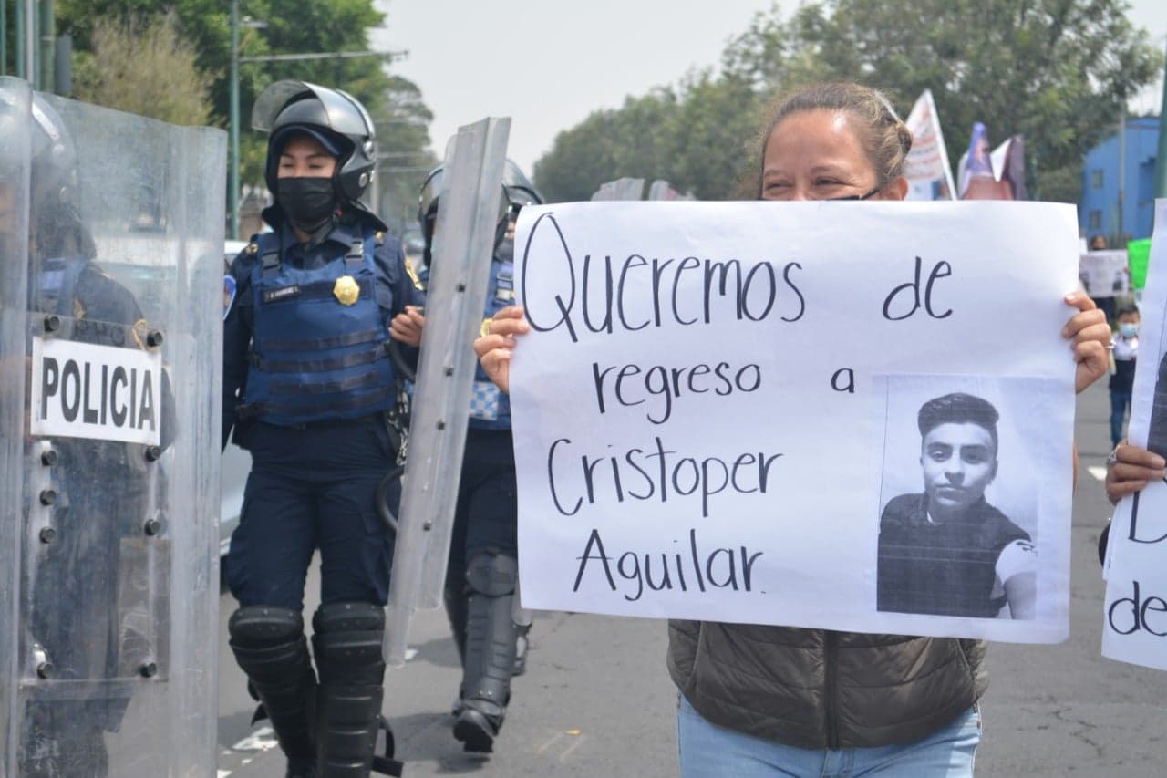 Con pancartas que muestran el dolor de los familiares, como “Mamá Karla, regresa a casa, te extraño”, el contingente salió de Canal del norte y prosiguió por Paseo de la Reforma, pero fueron encapsulados por la policía capitalina en 5 de mayo, para impedirles el paso hacia el zócalo.